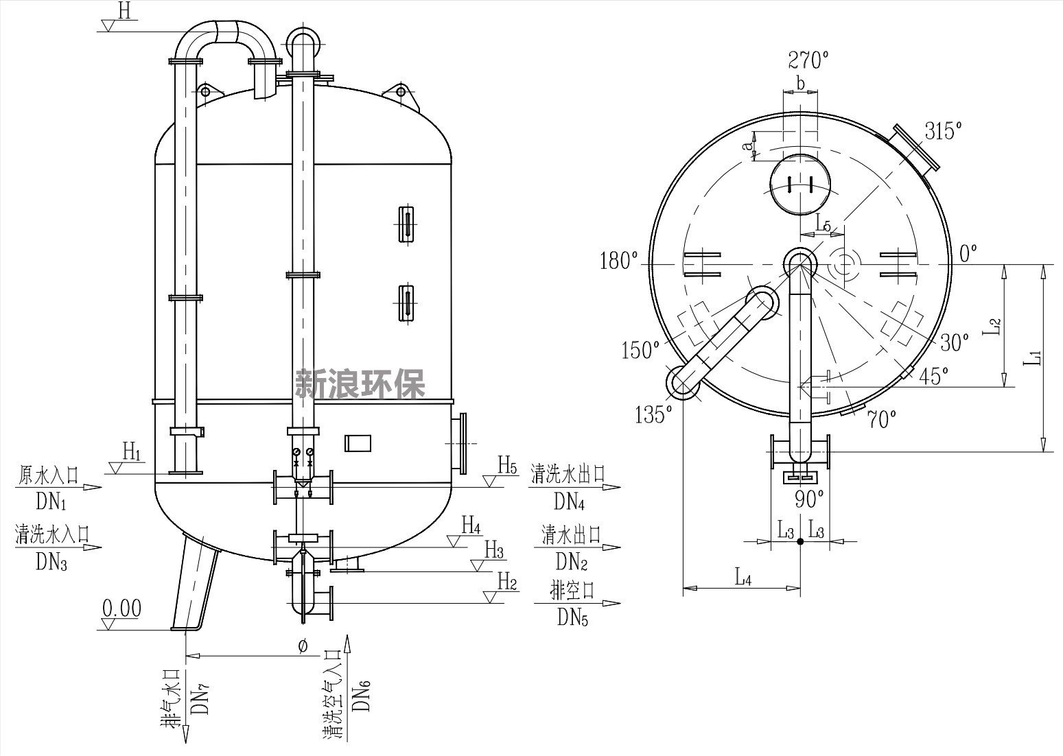 2、設備所有接口法蘭壓力等級為PN1.0MPa;