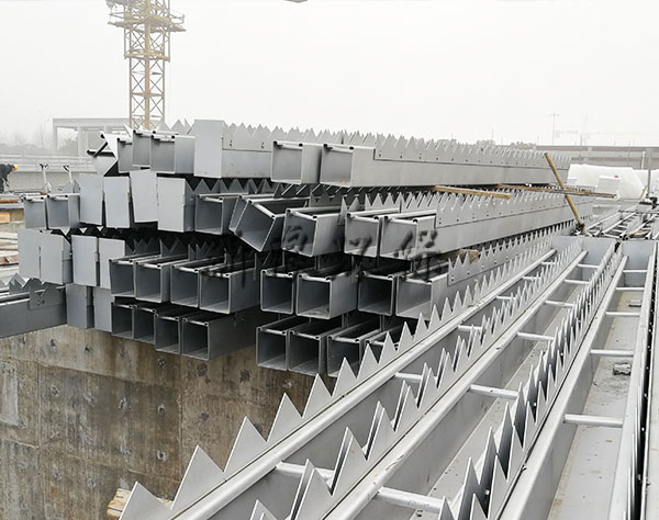 集水槽是用來均勻收集溢面清水的設(shè)備,主要用于沉淀池的出水端,常采用條形孔式或鋸齒式。斜管斜板沉淀池表面均勻布置集水槽、圓形澄清池采用環(huán)繞槽或配置輻射槽、污水廠終沉池采用圓形集水槽。