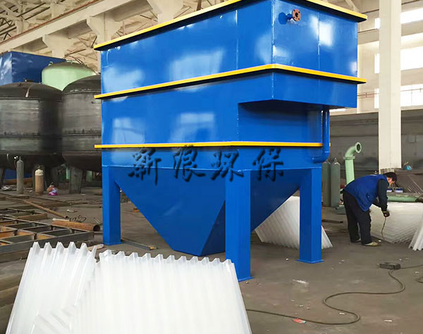 一體化絮凝原理污水沉淀設(shè)備主要由多排多層V型管傾斜組合而成。使用時(shí),由于斜置的V型管壁的作用,各處沉淀到V型管內(nèi)壁上的泥渣均近距離滑向V型管的底角處并沿底角線自動(dòng)向下滑出管腔,凈化后的清水從沉淀器上口排出,既有利于泥渣與上向流的進(jìn)水拉開距離,避免了泥渣再次泛起的不利影響,又有利于將集中在V型管底角的泥渣自動(dòng)沿底角線向下滑出管腔。改善了泥、水分離條件,能有效提高沉淀效果。具有結(jié)構(gòu)簡(jiǎn)單合理、沉淀效率高、出水水質(zhì)好,運(yùn)行穩(wěn)定可靠、工程造價(jià)低等.